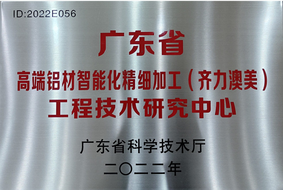 被認定為佛山市高端鋁材智能化精細加工工程技術研究中心